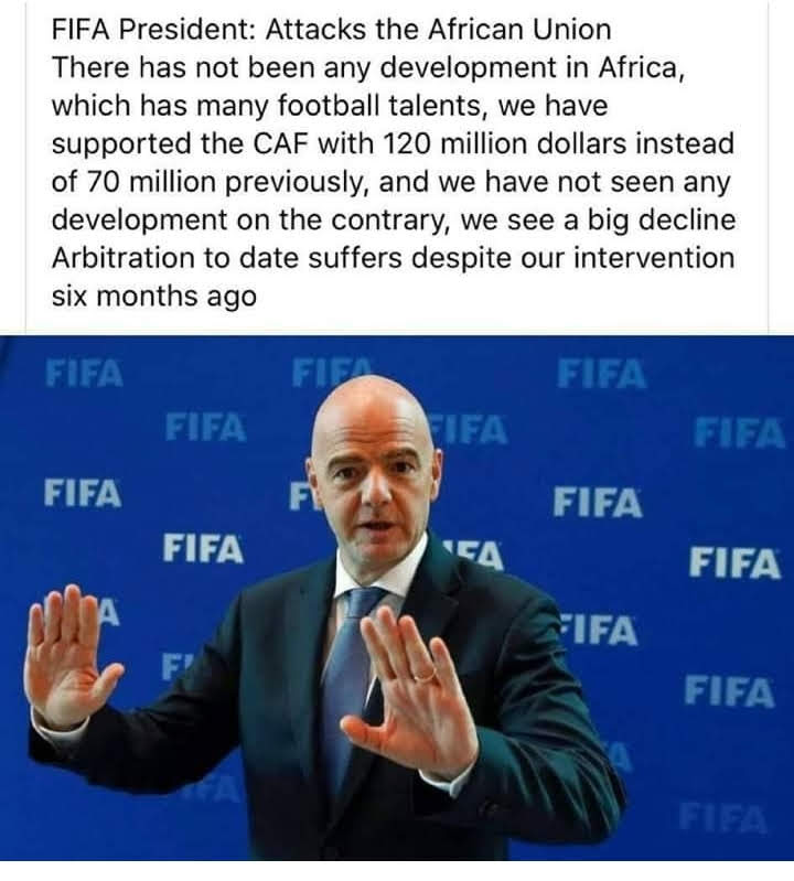 For instance, he has proposed the setting up of an elite set of 20 referees who will be trained, maintained and funded by FIFA to officiate all the critical qualifiers and continental competitions without the involvement of CAF.