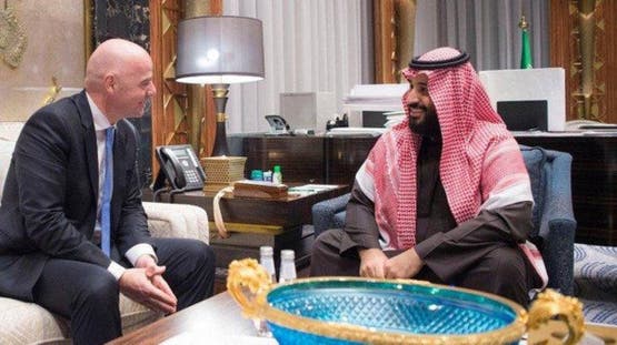 FIFA President Gianni Infantino with Saudi Arabia’s Crown Prince Mohammed Bin Salman