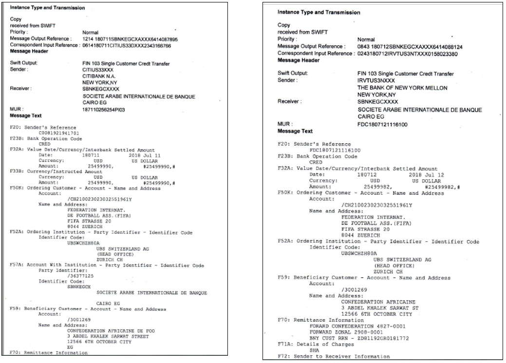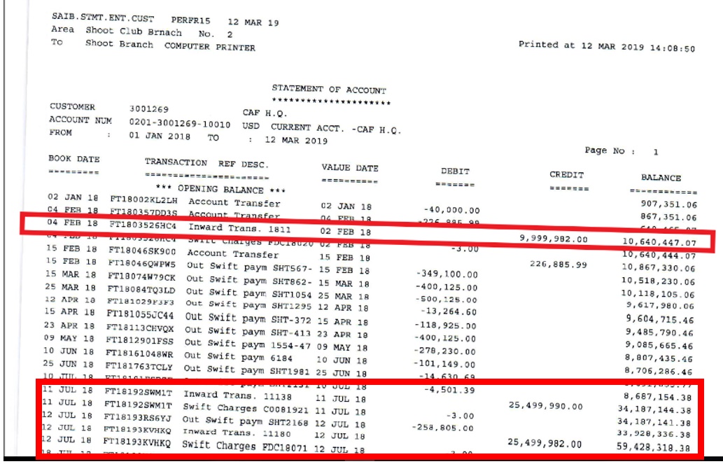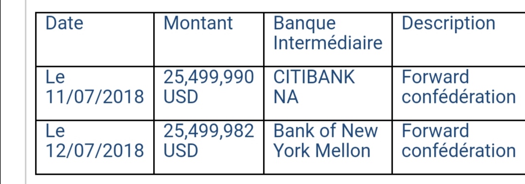 However, something happened and CAF apparently got two tranches of the money on the 11th and 12th of July 2018.